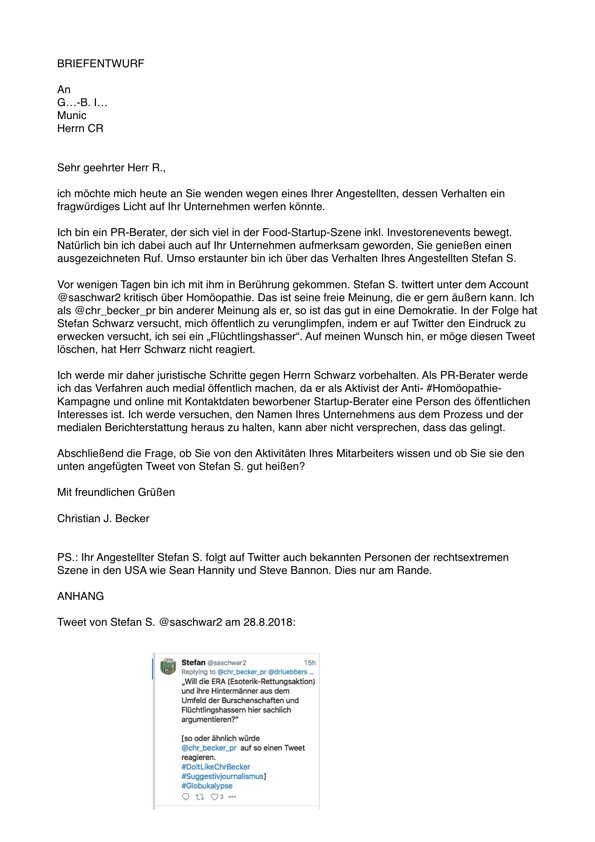 Mail-Adresse redaktion@homoeopathiewatchblog.de vom 11.10.2018 per Mail